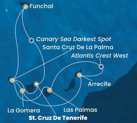 Hajó útvonala: Teneriffe, Kanári-szigetek - Santa Cruz de La Palma - La Gomera - Arrecife - Las Palmas, Gran Canaria - Funchal , Madeira - Teneriffe