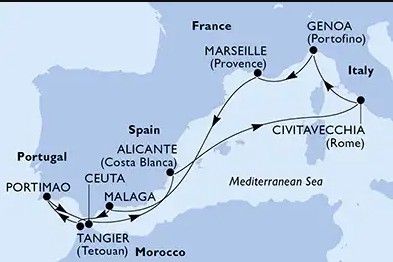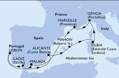 OLASZ ÉS SPANYOL PARTOK MENTÉN – 7 éjszakás hajóutak – MSC SINFONIA LUXUSHAJÓ - 2026. ősz, tél és 2027. tél, tavasz